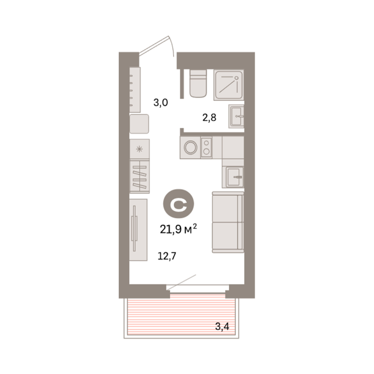 | Общая площадь: | 21.9 м2 |