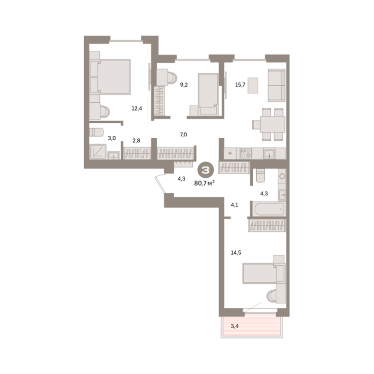 | Общая площадь: | 80.7 м2 |