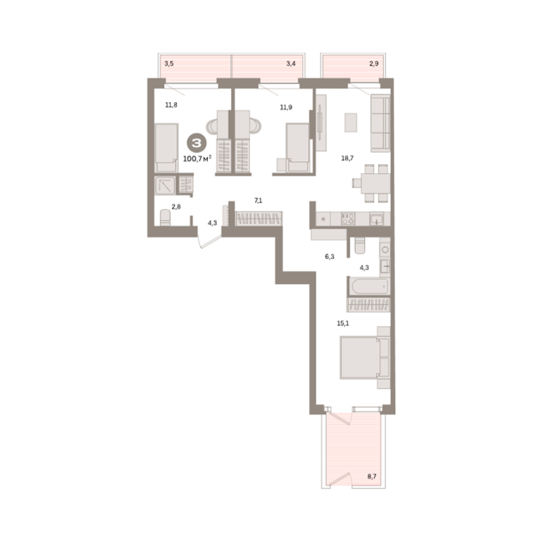 | Общая площадь: | 100.7 м2 |