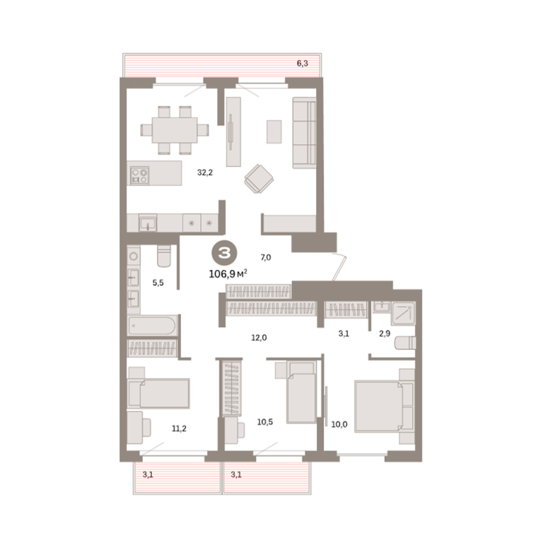 | Общая площадь: | 106.9 м2 |