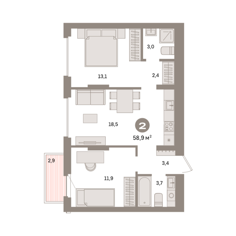 | Общая площадь: | 58.9 м2 |