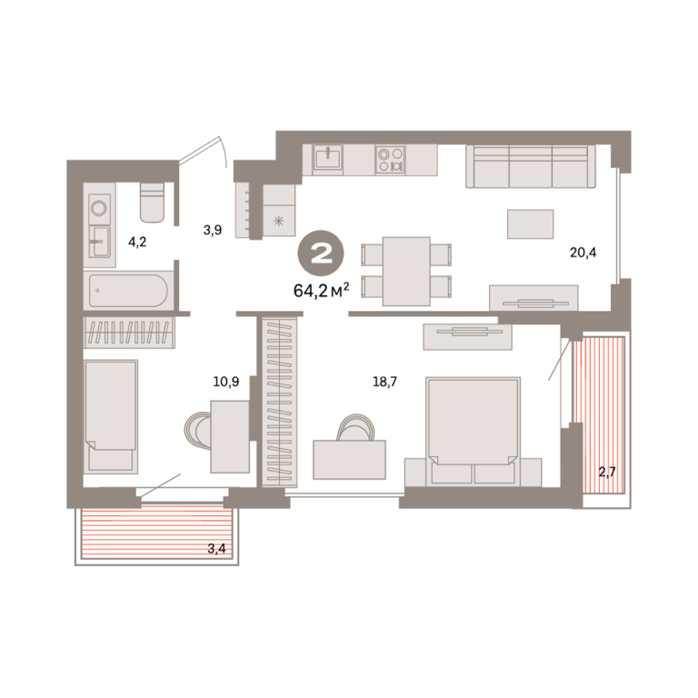 | Общая площадь: | 64.2 м2 |