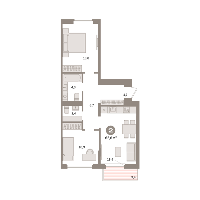| Общая площадь: | 62.6 м2 |