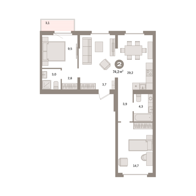 | Общая площадь: | 74.2 м2 |