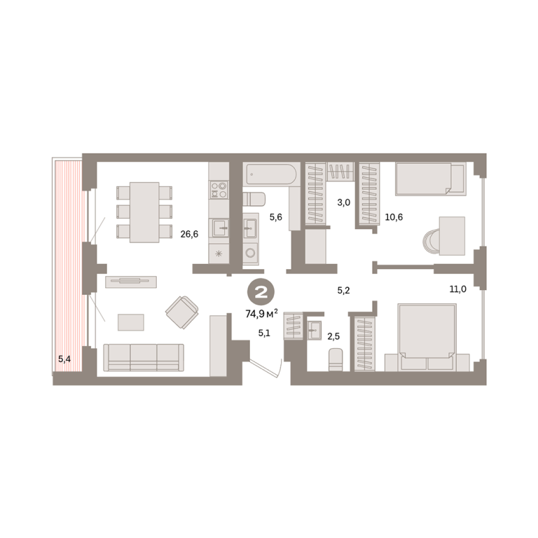 | Общая площадь: | 74.9 м2 |