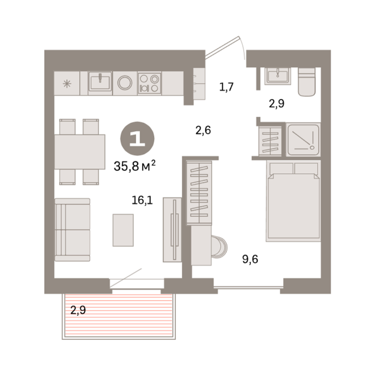| Общая площадь: | 35.8 м2 |
