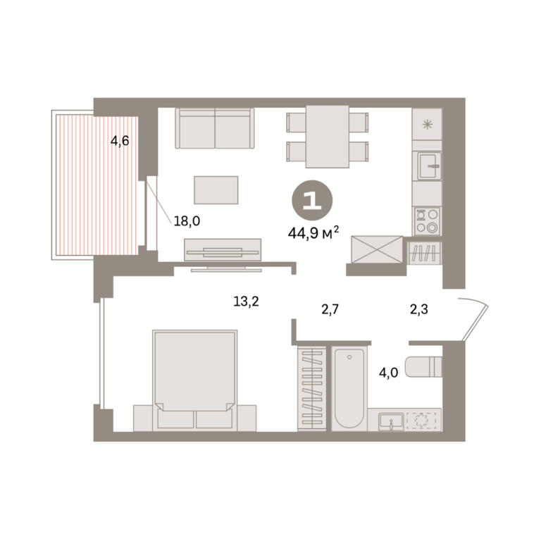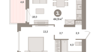 | Общая площадь: | 44.9 м2 |