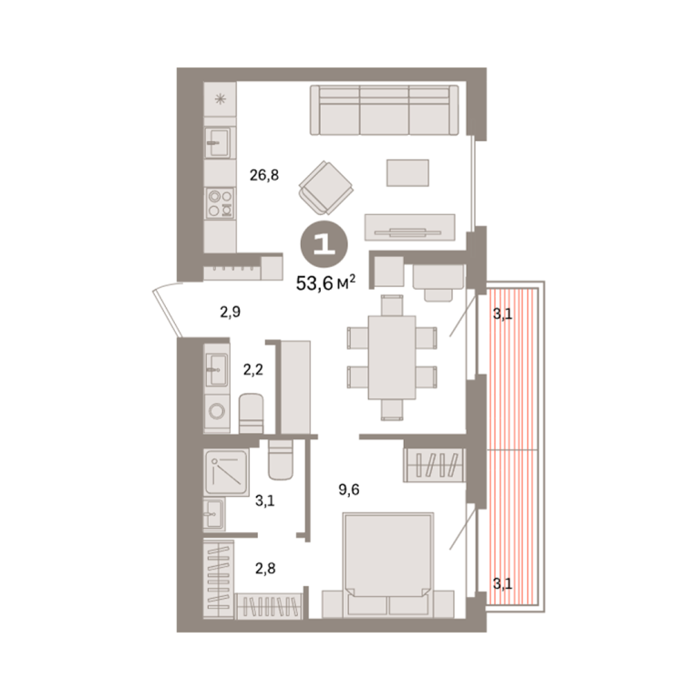 | Общая площадь: | 53.6 м2 |