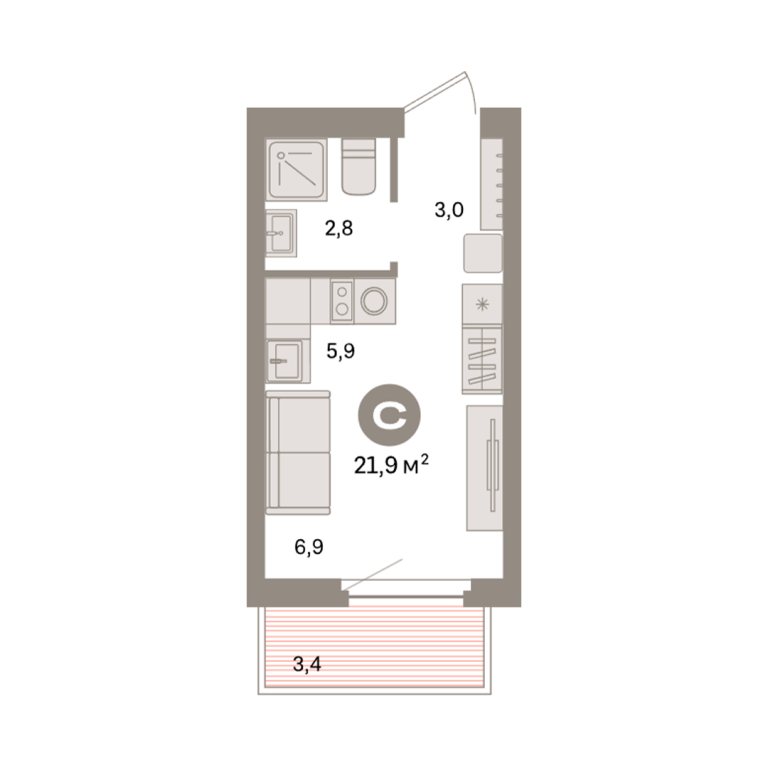 | Общая площадь: | 21.9 м2 |