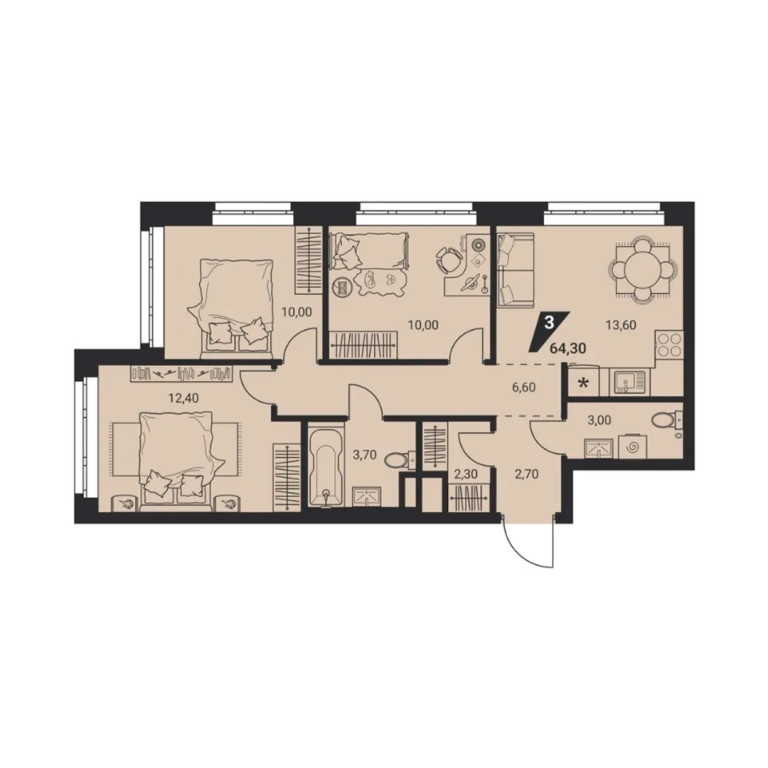 | Количество комнат: | 3 |