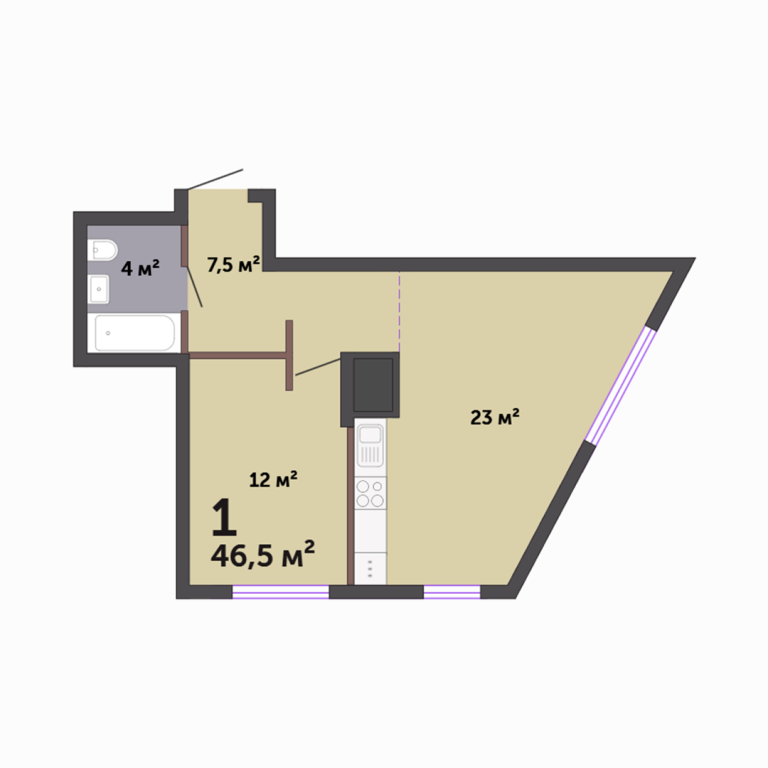 | Общая площадь: | 46.5 м2 |