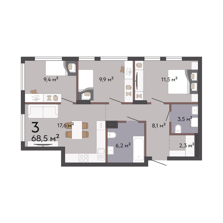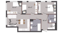 | Общая площадь: | 68.5 м2 |