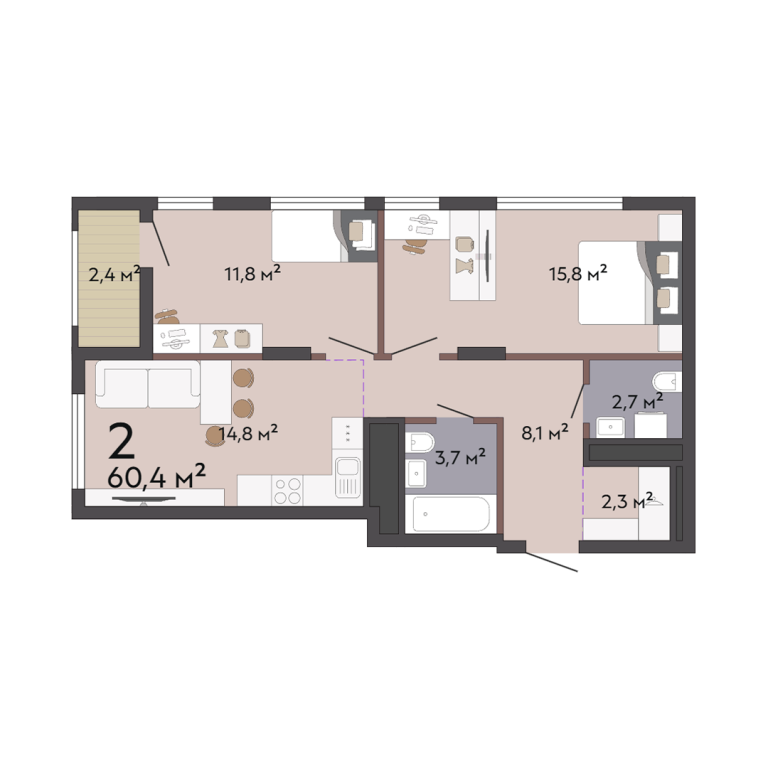 | Общая площадь: | 60.4 м2 |