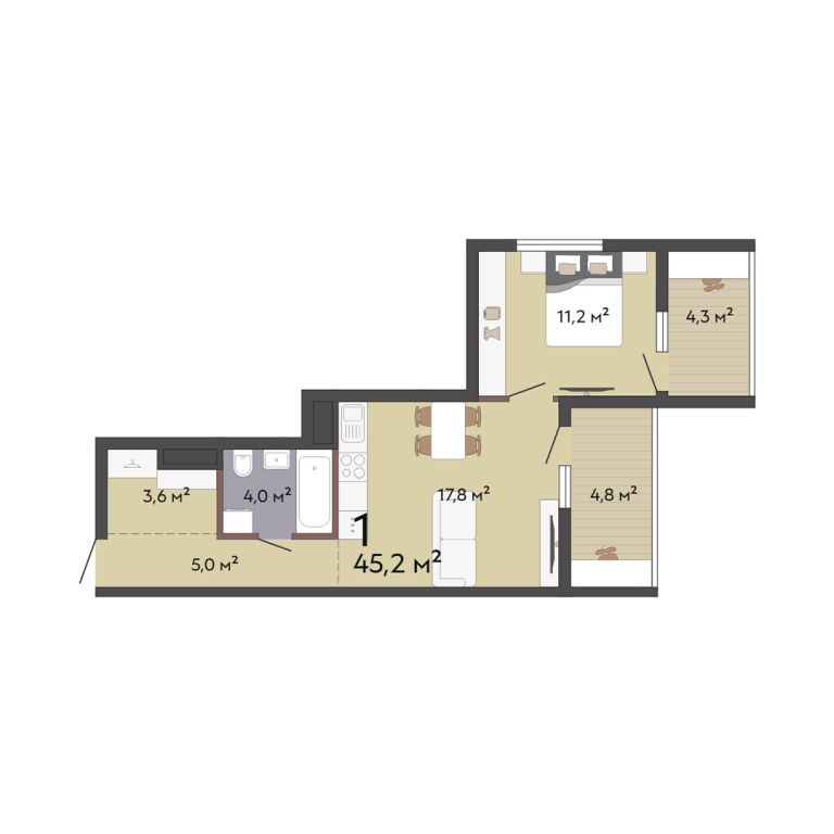 | Общая площадь: | 45.2 м2 |