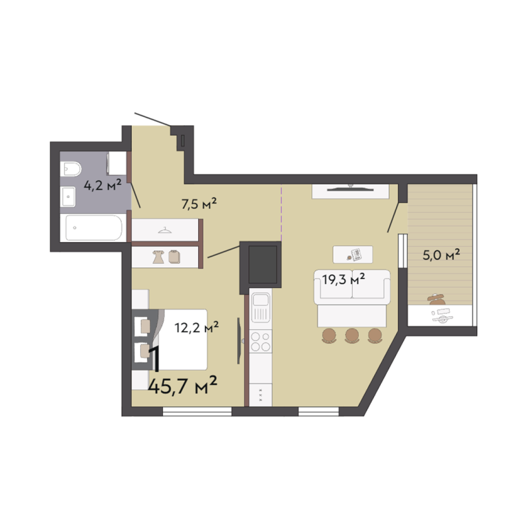 | Общая площадь: | 45.7 м2 |