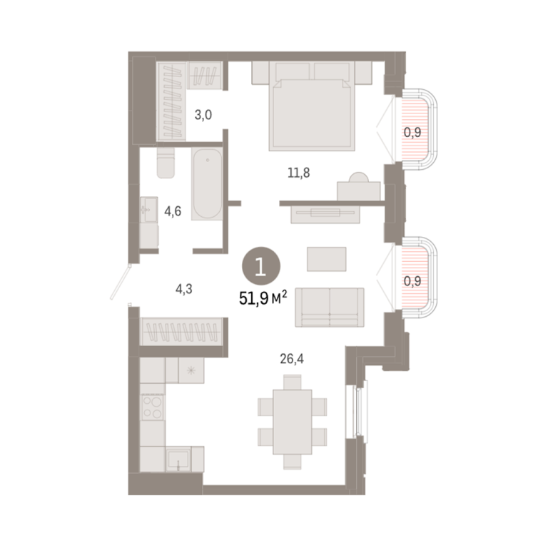 | Общая площадь: | 51.9 м2 |