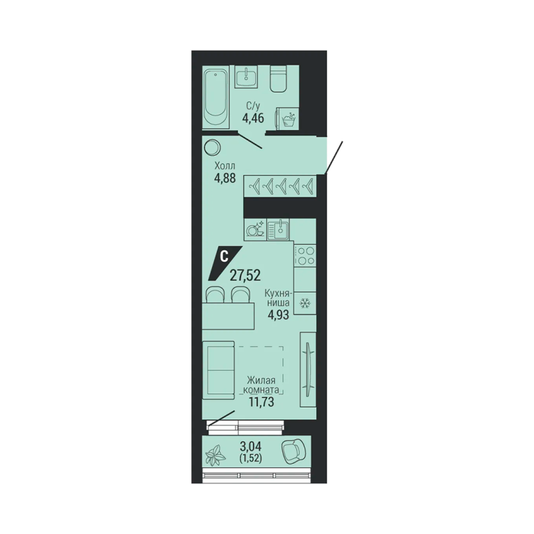 | Общая площадь: | 27.52 м2 |