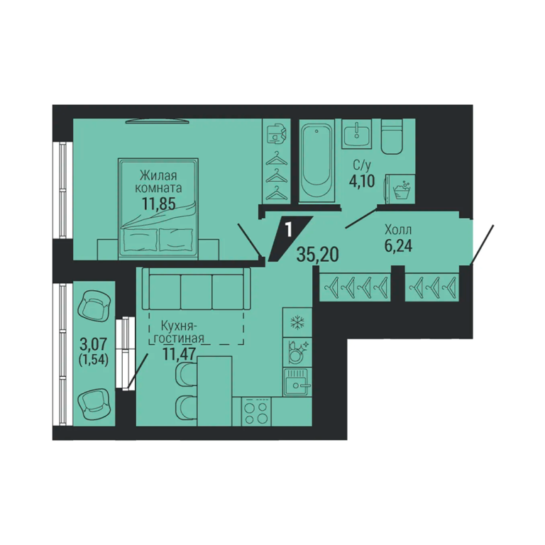 | Общая площадь: | 35.2 м2 |