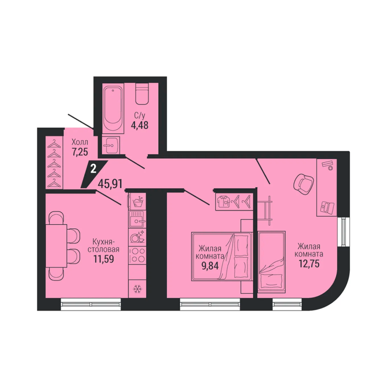 | Общая площадь: | 45.91 м2 |