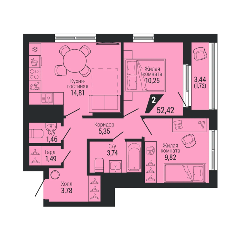 | Общая площадь: | 52.42 м2 |