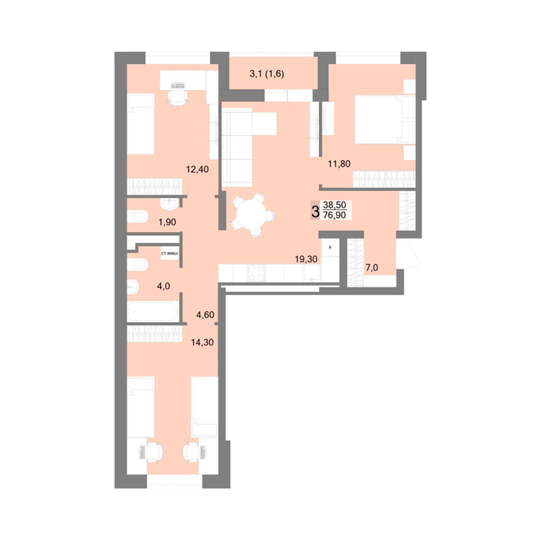 | Общая площадь: | 76.9 м2 |
