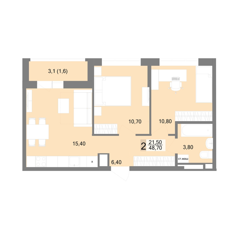 | Общая площадь: | 48.7 м2 |