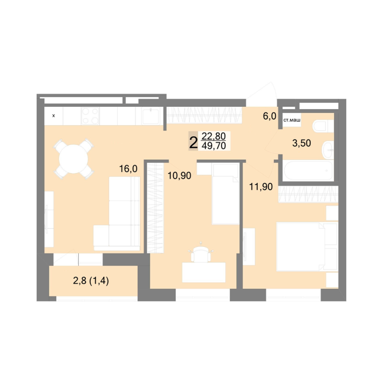 | Общая площадь: | 49.7 м2 |
