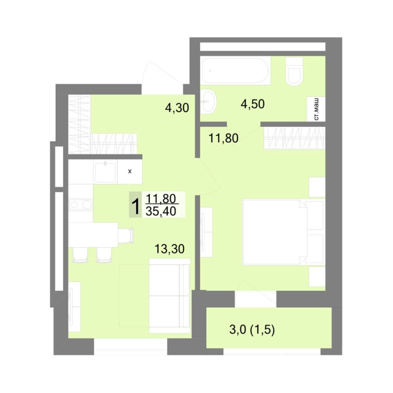 | Общая площадь: | 35.4 м2 |