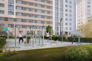 Для начинающих футболистов – мини-футбольное поле с искусственным газоном. Шум от игр не потревожит ваш покой. Во дворе каждый найдёт занятие по душе! Безопасность и комфорт Вход на территорию – Face ID или мобильное приложение. Круглосуточное видеонаблюдение. Подземный паркинг Двухуровневый паркинг с местами от 13 до 16 м². Доступ – только для владельцев. Система контроля: