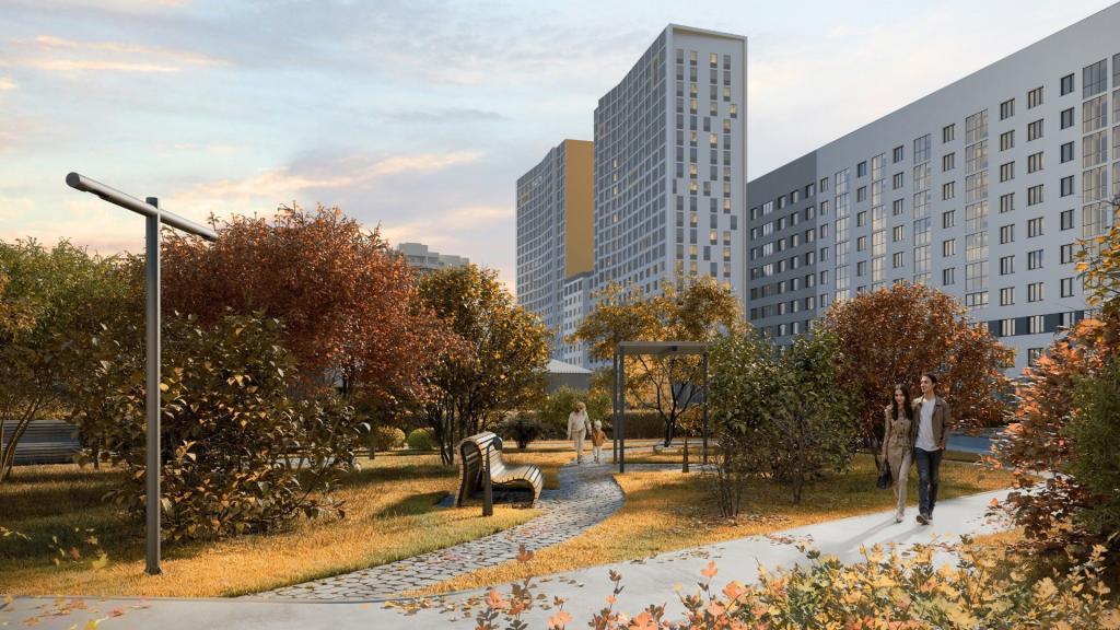 Живые зелёные изгороди защитят жителей первых этажей от посторонних взглядов. Уютный сад с плитняковыми тропинками, перголами и столиками подойдёт для семейных вечеров и встреч с друзьями. Вдоль дорожек установят невысокие фонари. По периметру двора появится велодорожка. Игровые площадки покроют травмобезопасной резиновой крошкой. Малые архитектурные формы: