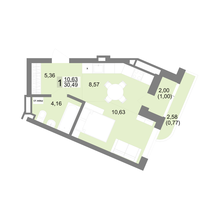| Общая площадь: | 30.49 м2 |
