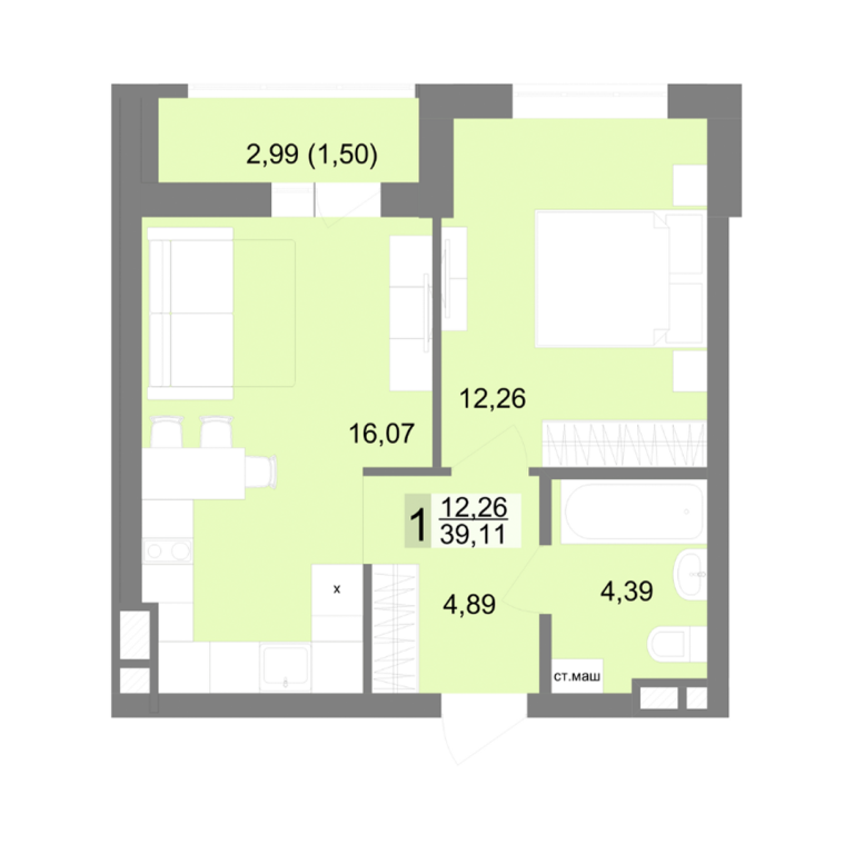 | Общая площадь: | 39.11 м2 |
