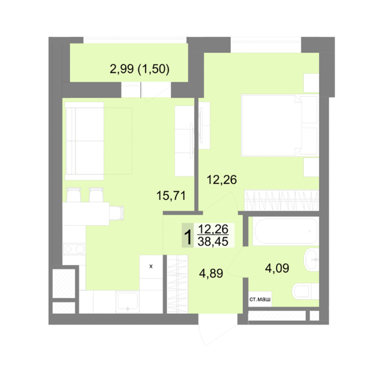 | Общая площадь: | 38.45 м2 |