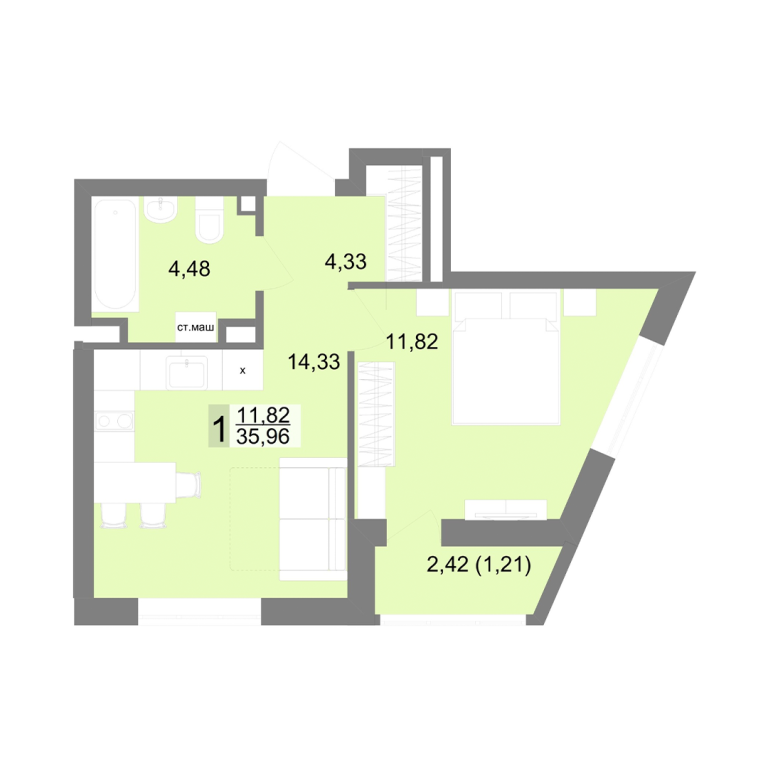 | Общая площадь: | 35.96 м2 |