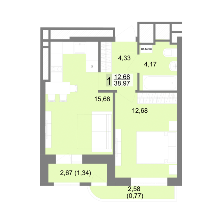 | Общая площадь: | 38.97 м2 |