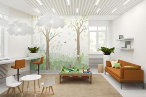 Живые зелёные изгороди защитят жителей первых этажей от посторонних взглядов. Уютный сад с плитняковыми тропинками, перголами и столиками подойдёт для семейных вечеров и встреч с друзьями. Вдоль дорожек установят невысокие фонари. По периметру двора появится велодорожка. Игровые площадки покроют травмобезопасной резиновой крошкой. Малые архитектурные формы: