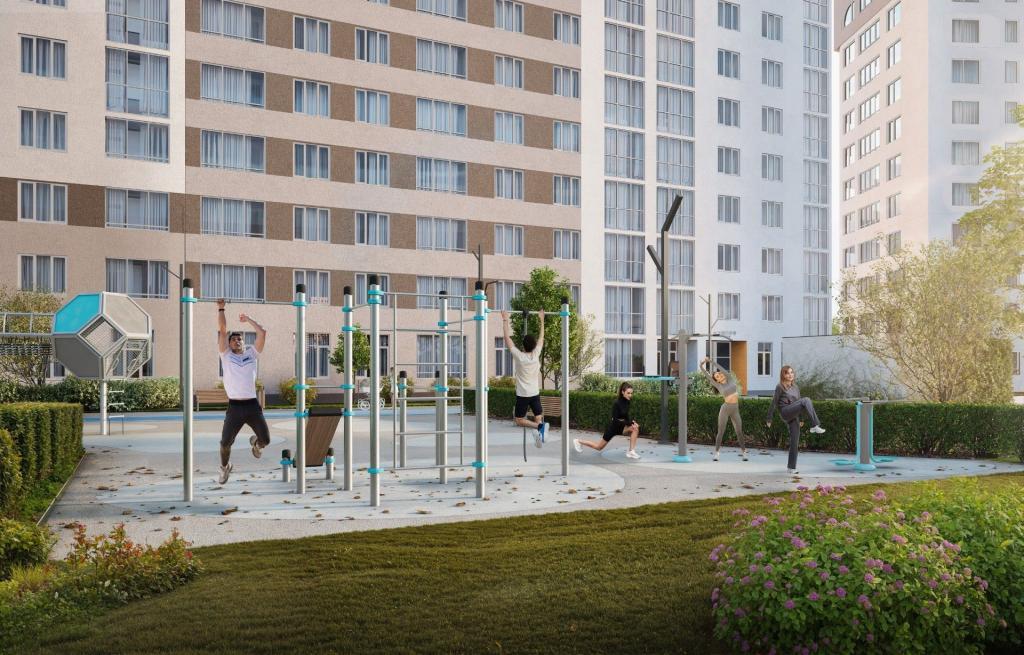 Для начинающих футболистов – мини-футбольное поле с искусственным газоном. Шум от игр не потревожит ваш покой. Во дворе каждый найдёт занятие по душе! Безопасность и комфорт Вход на территорию – Face ID или мобильное приложение. Круглосуточное видеонаблюдение. Подземный паркинг Двухуровневый паркинг с местами от 13 до 16 м². Доступ – только для владельцев. Система контроля: