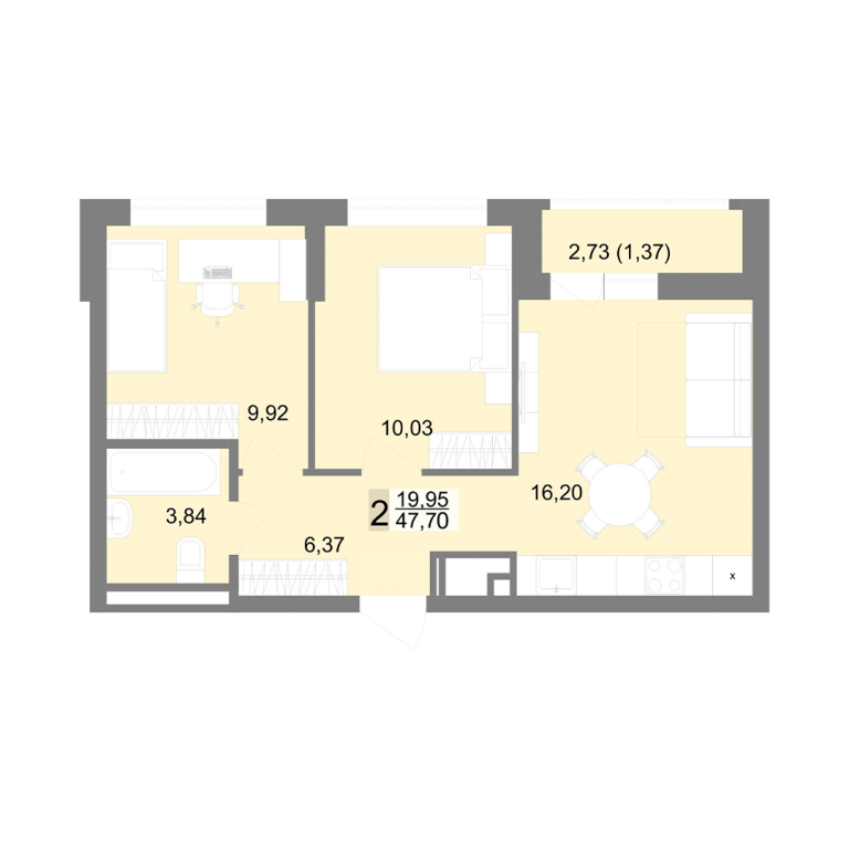 | Общая площадь: | 47.7 м2 |