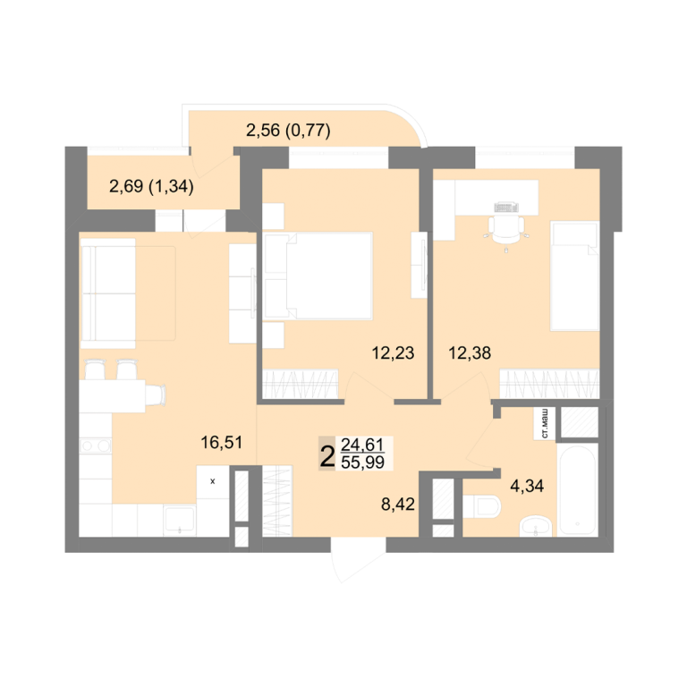 | Общая площадь: | 55.99 м2 |