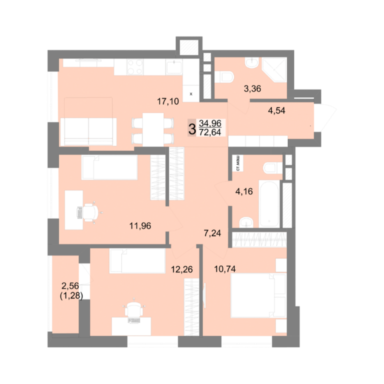 | Общая площадь: | 72.64 м2 |