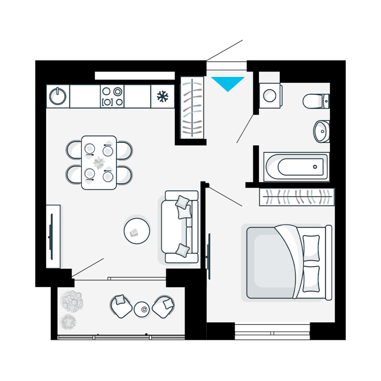 | Тип квартиры: | 1-комнатные |