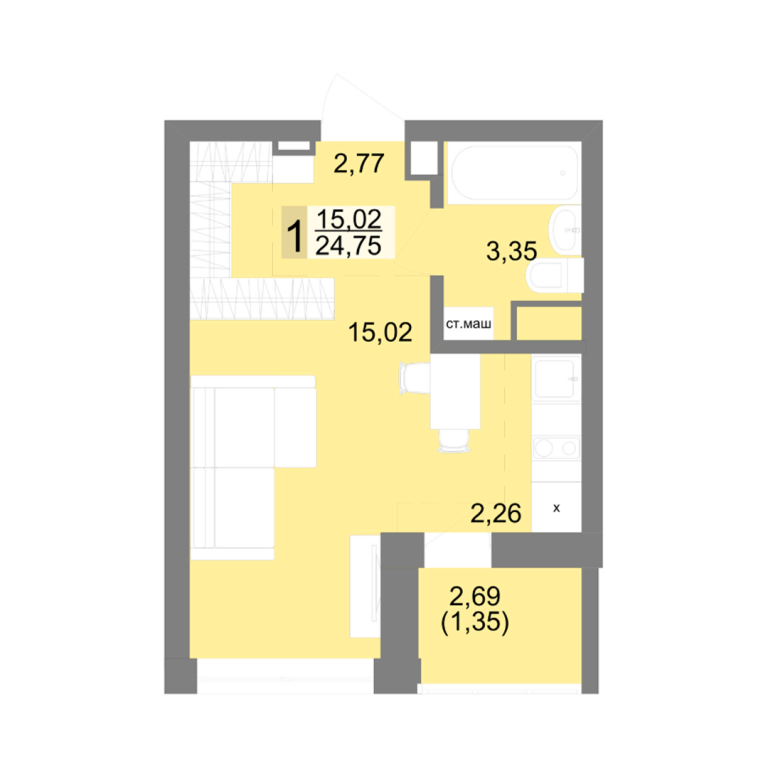- 35.1 м2
