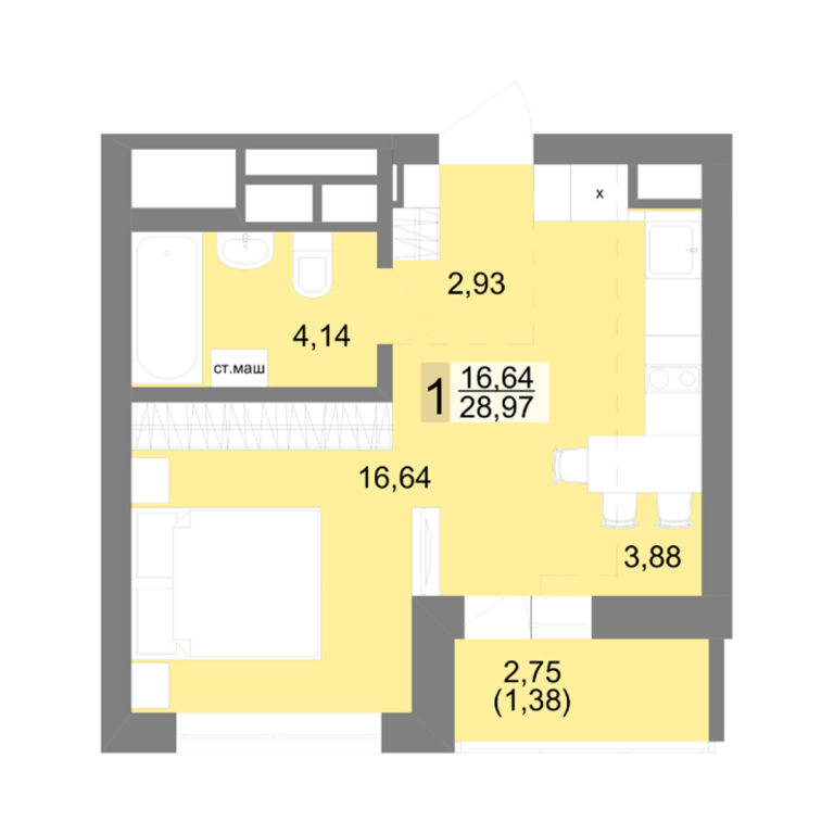 | Общая площадь: | 31.7 м2 |