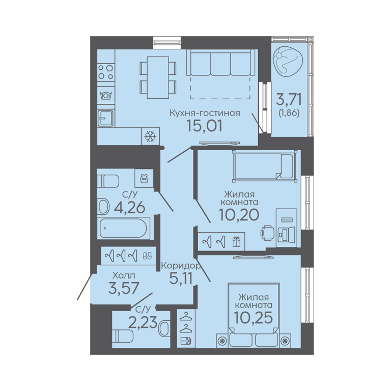 | Общая площадь: | 52.49 м2 |