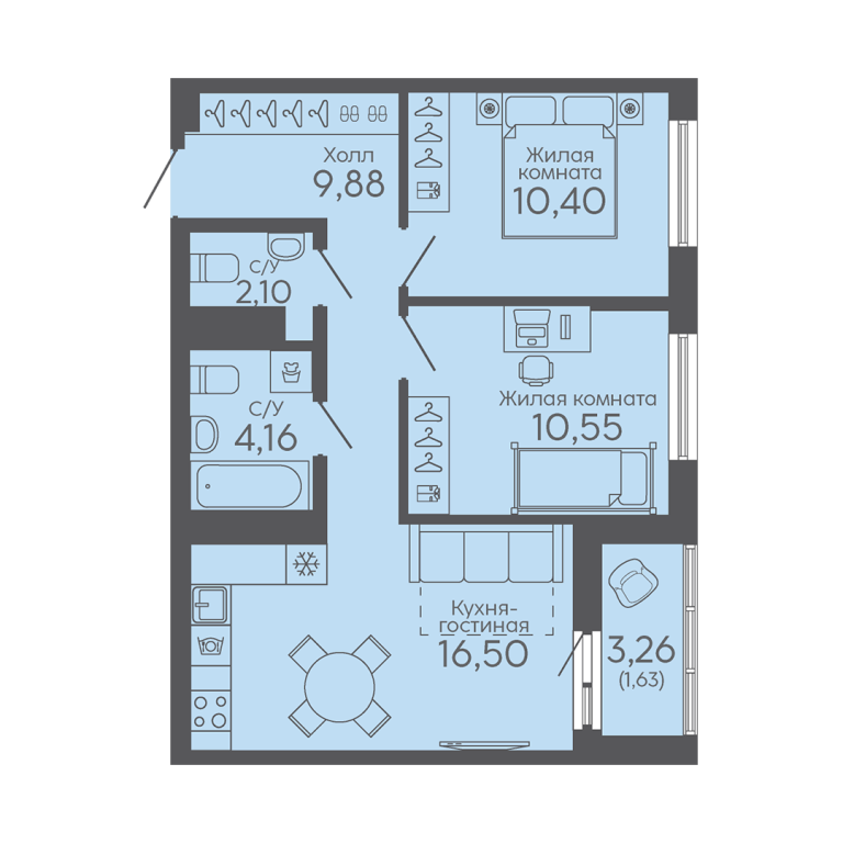 | Общая площадь: | 55.22 м2 |
