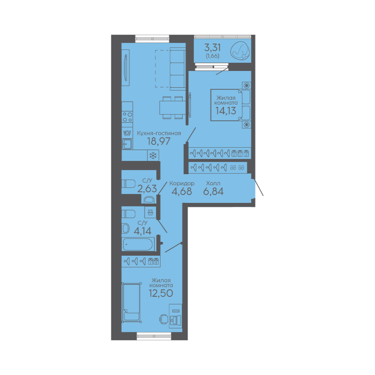 | Общая площадь: | 65.55 м2 |