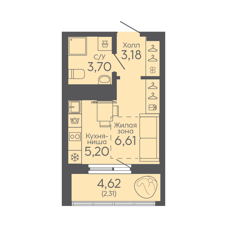 | Тип квартиры: | Студии |