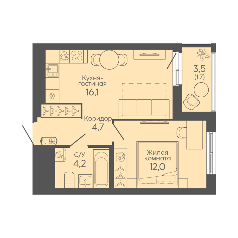 | Тип квартиры: | 1-комнатные |