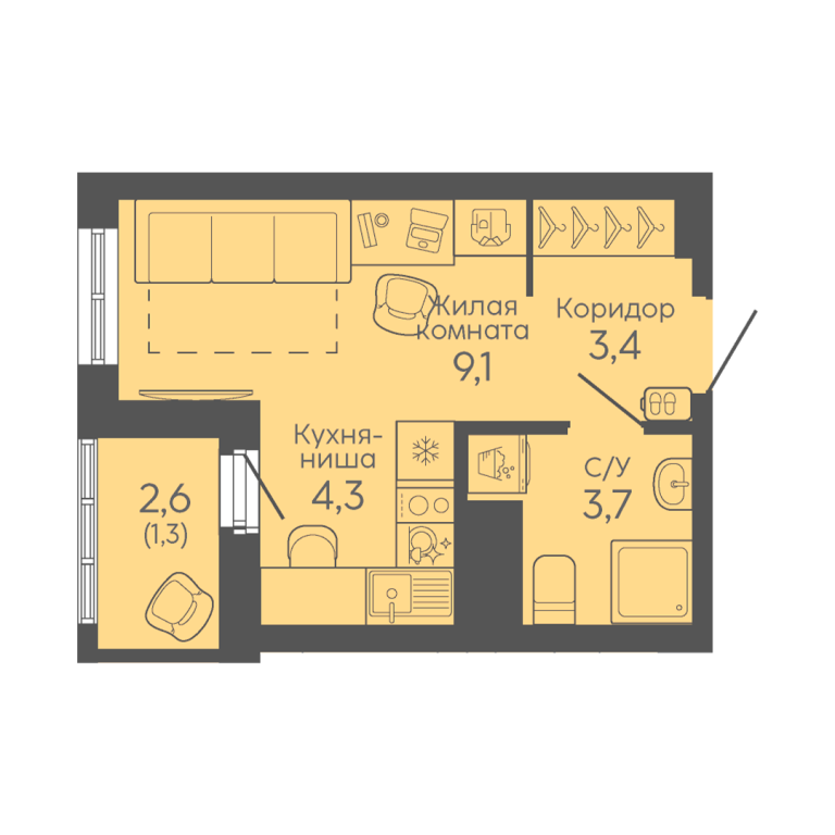 | Тип квартиры: | Студии |
