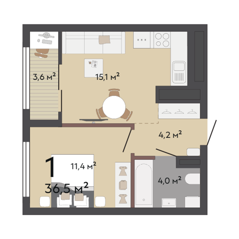 | Общая площадь: | 36.5 м2 |